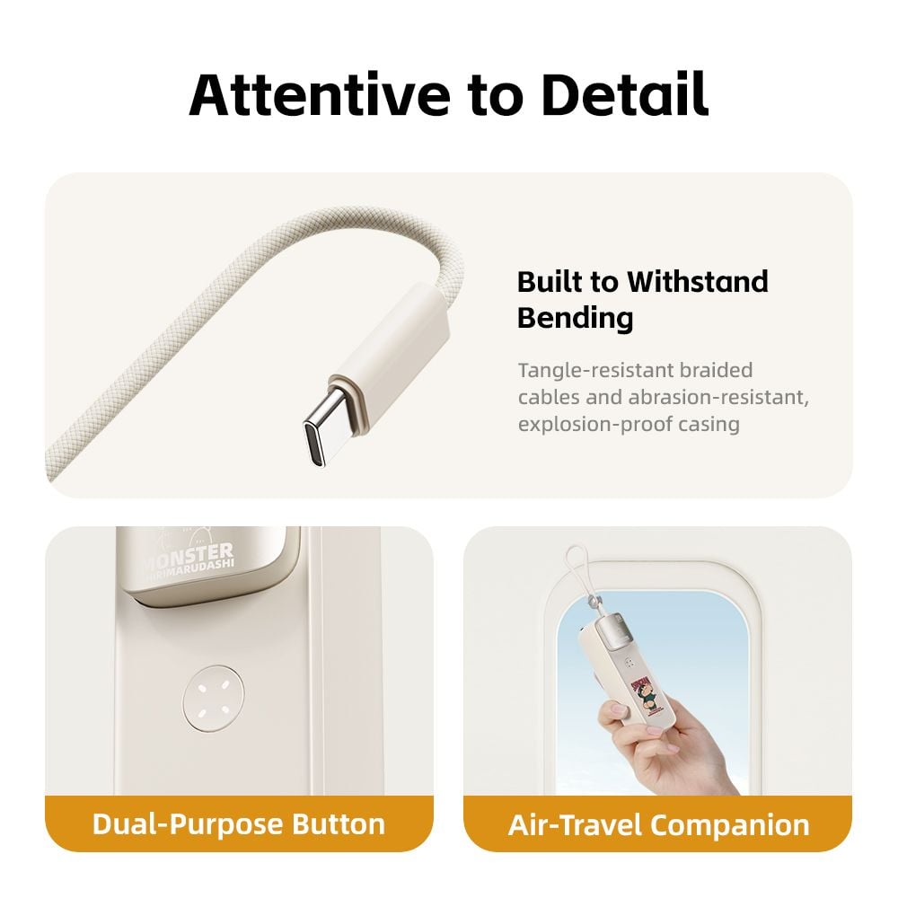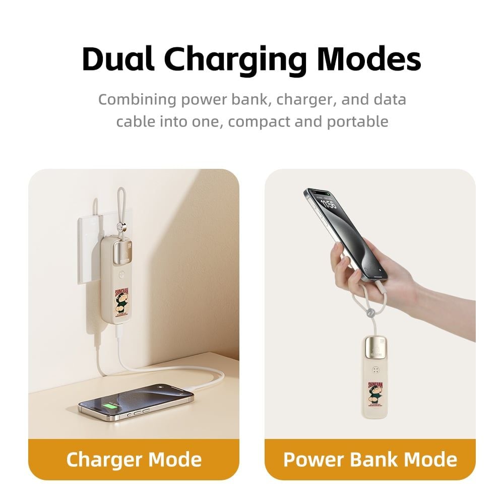 Pin Dự Phòng Kiêm Củ Sạc ROCK Crayon Shinchan with GaN 30W/20W Wall Charger 5000mAh (With Build-in Type-C Cable)