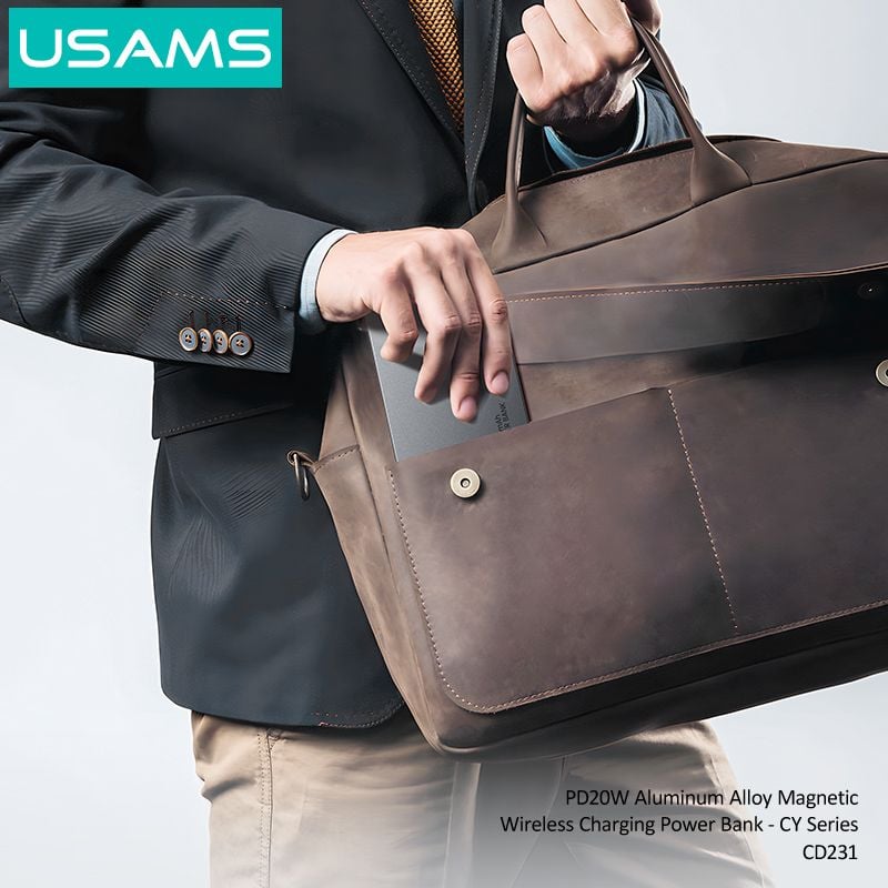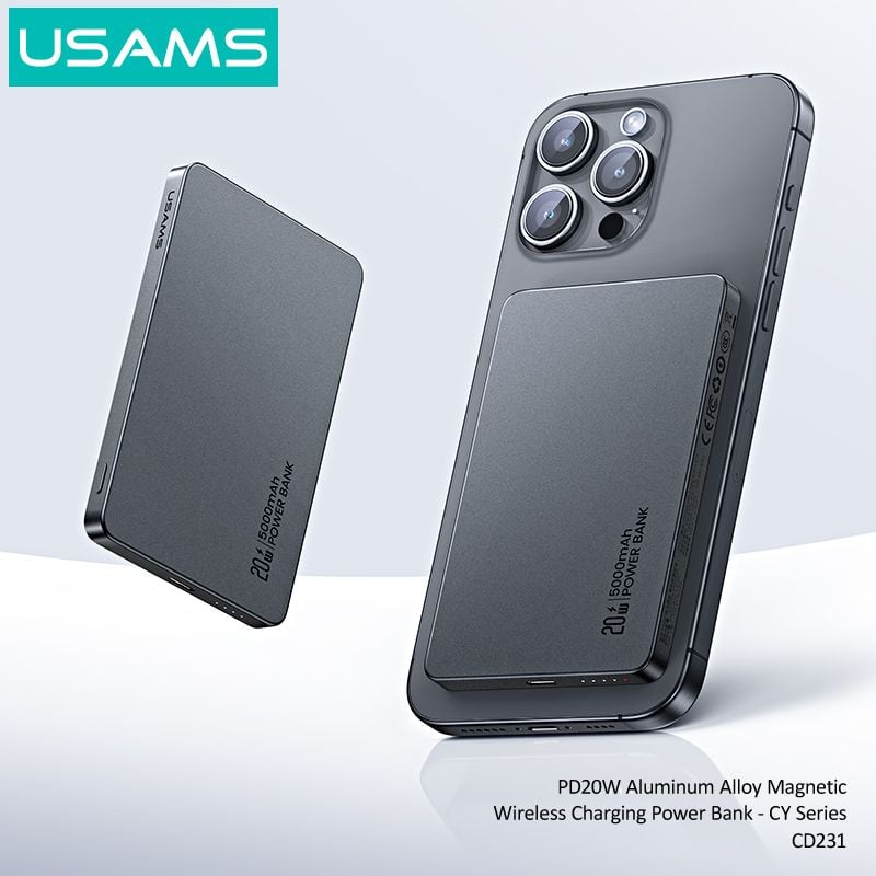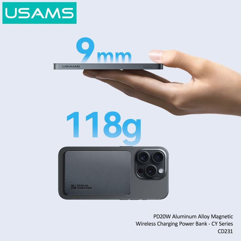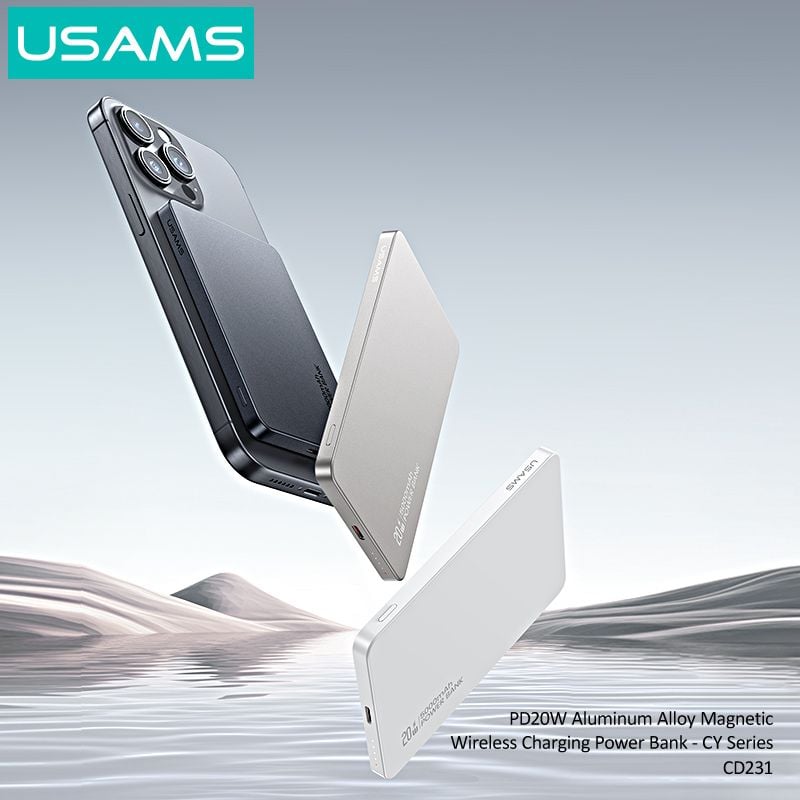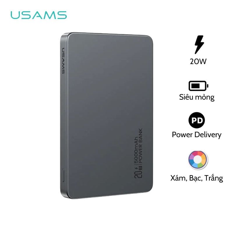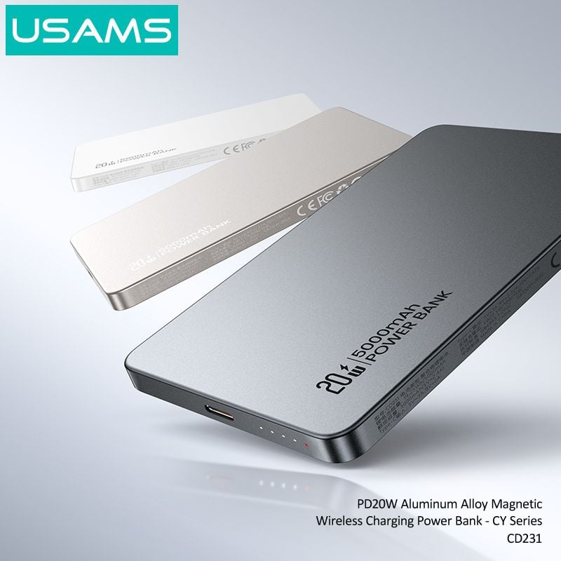 Pin Sạc Dự Phòng Không Dây Siêu Mỏng USAMS CD231 5000mAh 20W (15W Wireless Charging)