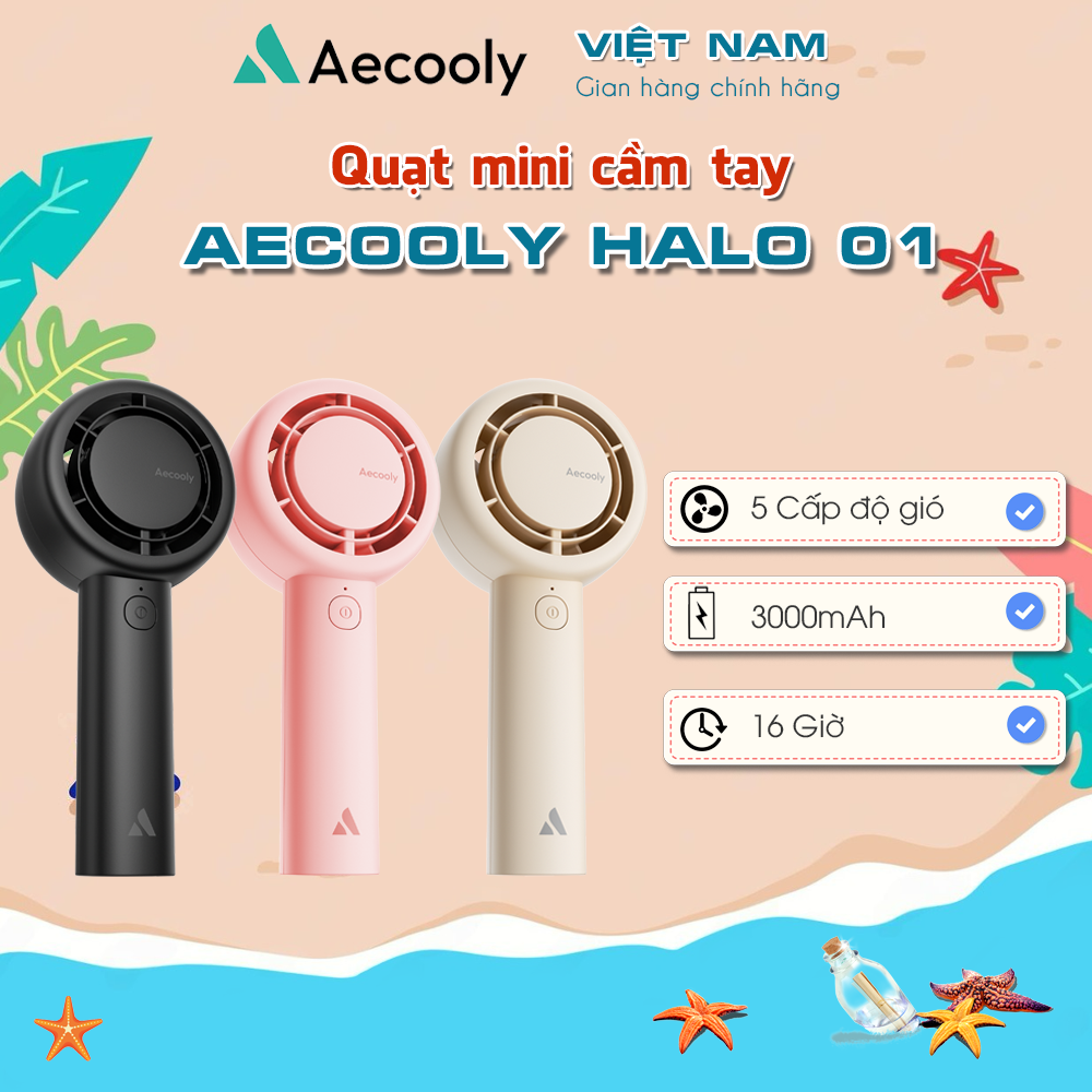 Quạt Cầm Tay AECOOLY Halo 01 (6000rpm, 5 Speed Settings, 16H, 3000mAh, 40 dB Low Noise)