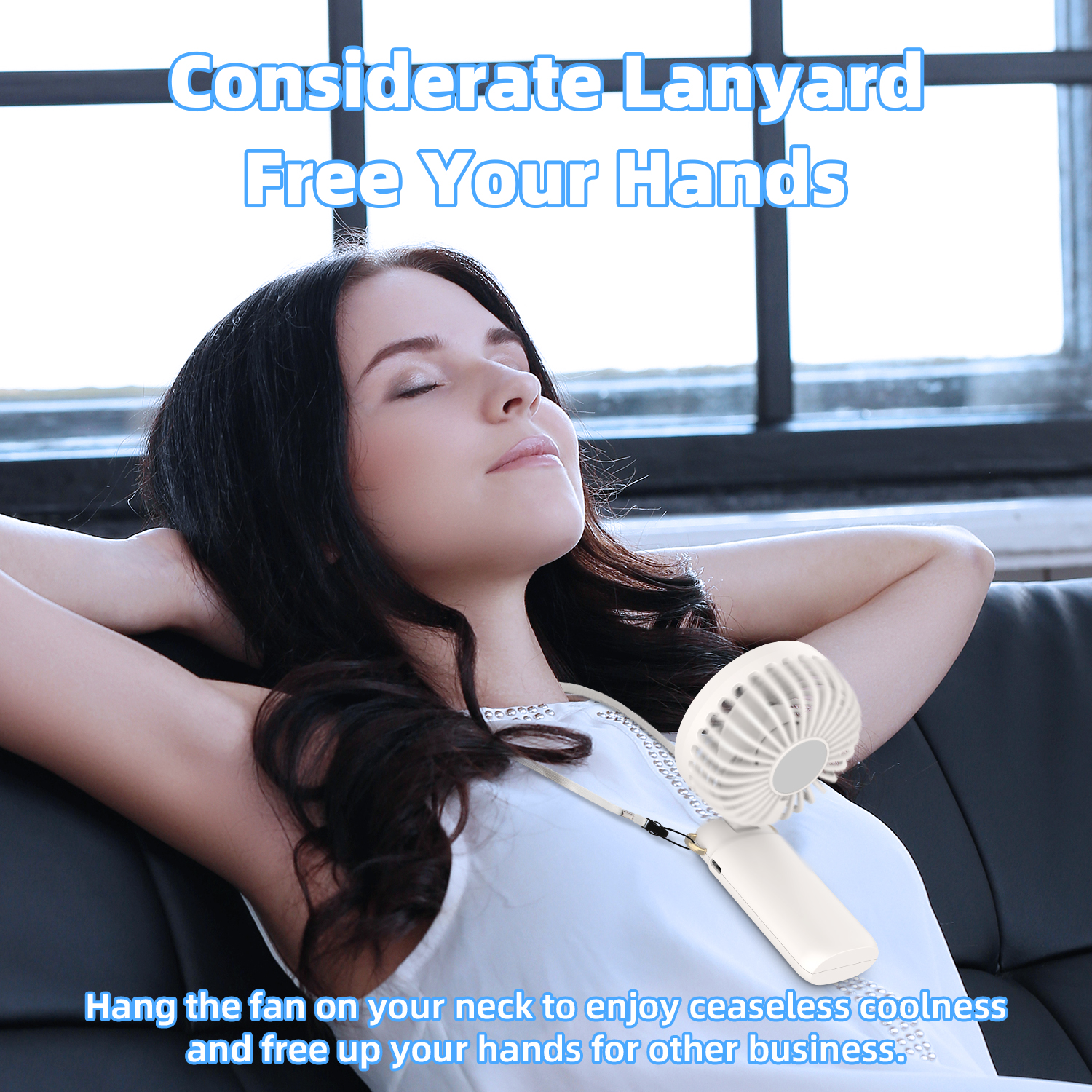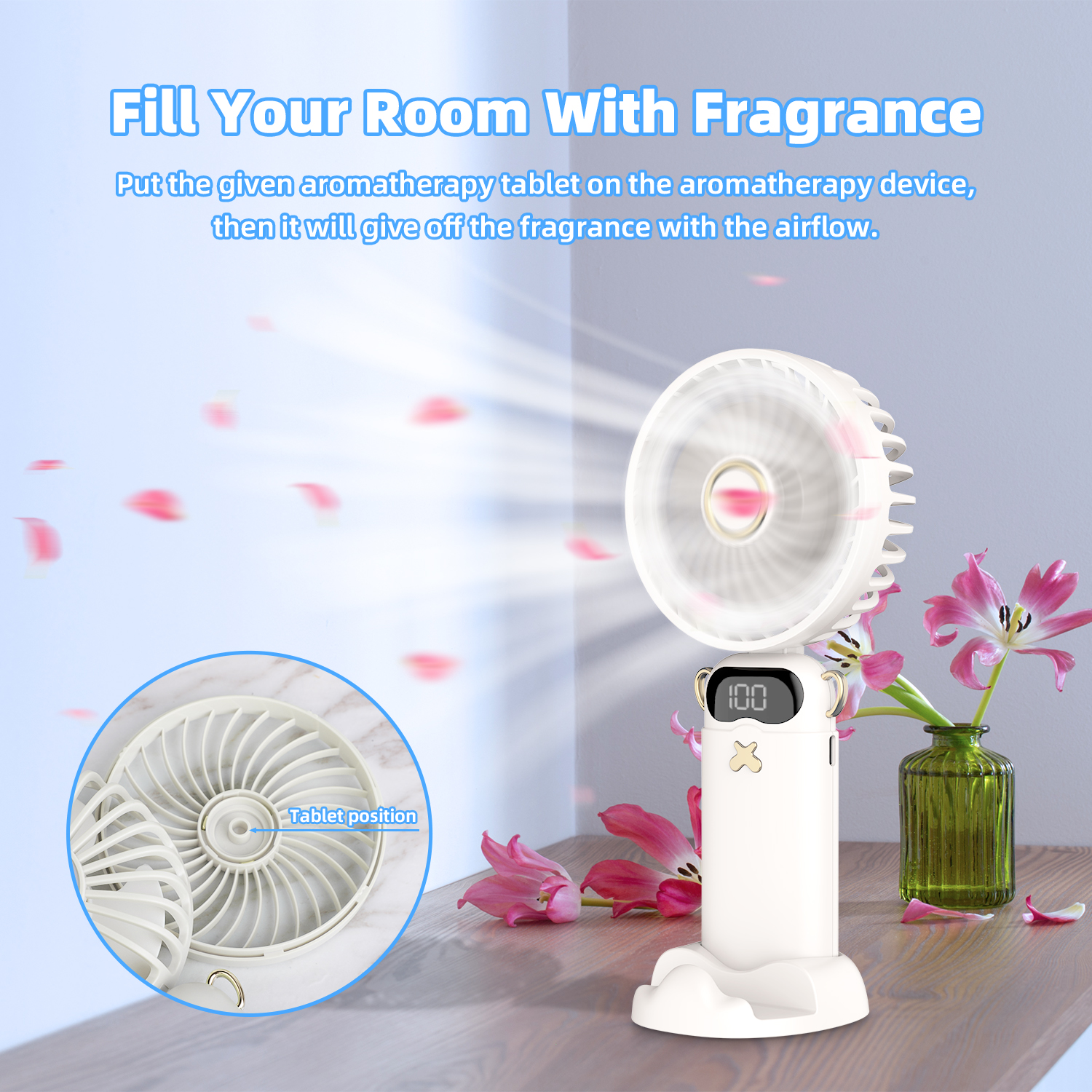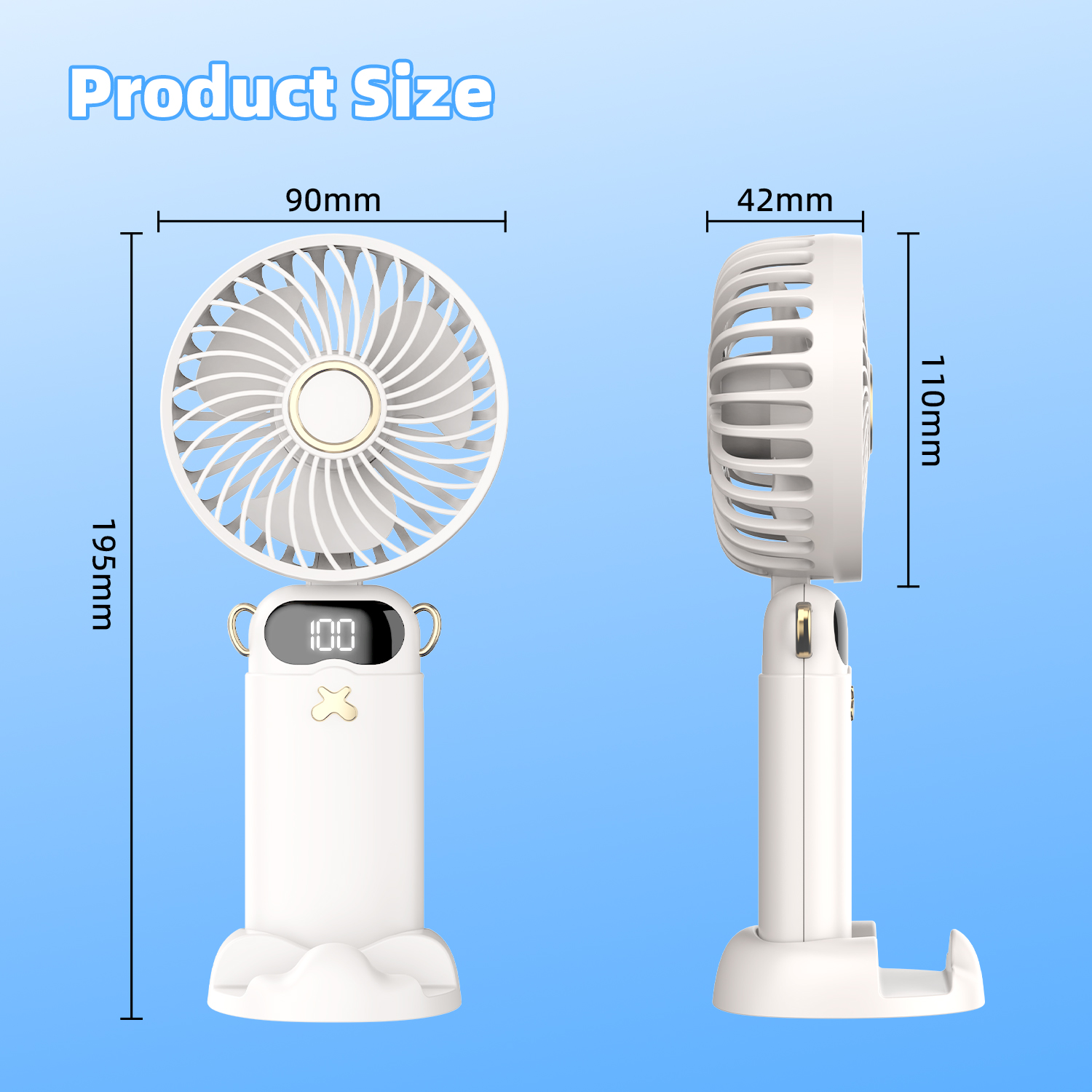 Quạt Cầm Tay Mini GOOJODOQ 1200mAh (6 cấp độ gió, Gập 90 độ, Màn hình LED hiển thị, Kèm đế giữ điện thoại)