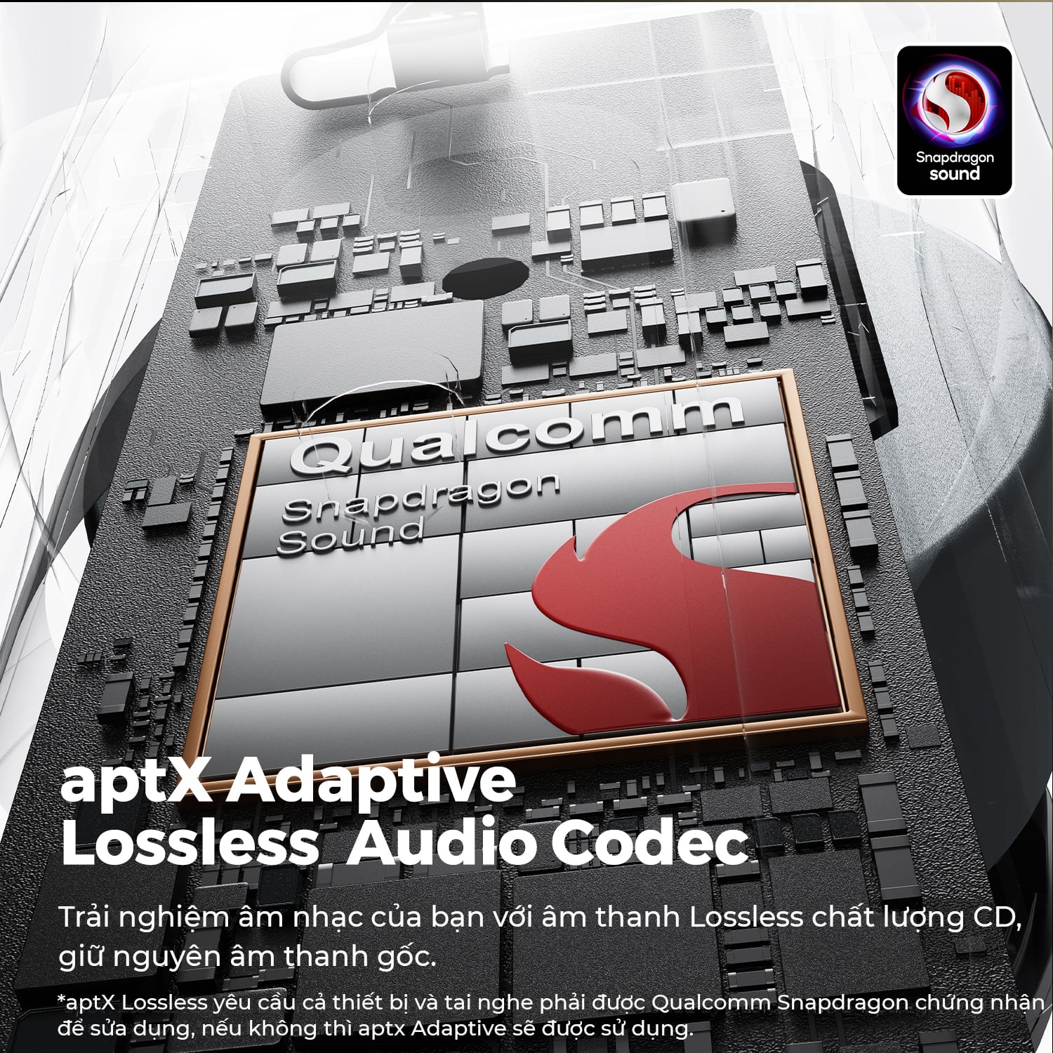 * Trang bị Snapdragon Sound™ và AptX Lossless mang lại trải nghiệm âm thanh cao cấp bằng cách duy trì tính toàn vẹn của tín hiệu âm thanh.