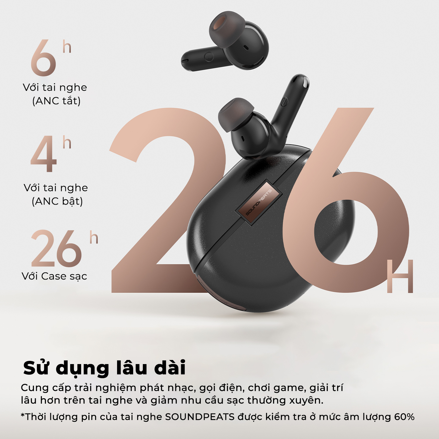 Tai Nghe Bluetooth TWS SoundPEATS Air4 Pro (Bluetooth v5.3, 6H, aptX Lossless codec, IPX4, Adaptive Hybrid ANC, 88ms, Support PeatsAudio app)