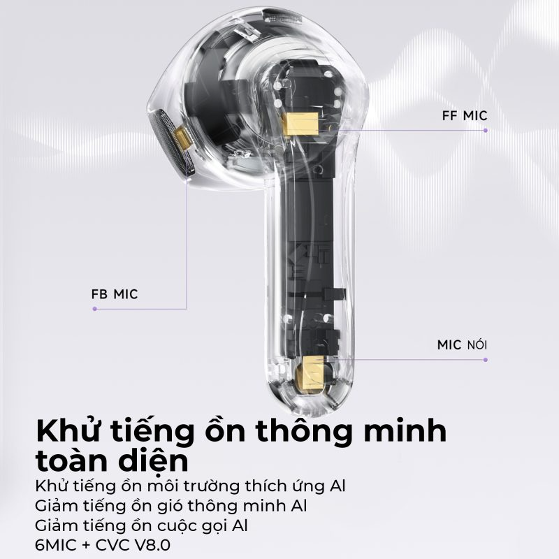 * Giảm tiếng ồn cuộc gọi với 6 mic chống ồn AI + thuật toán Qualcomm CVC V8.0 mới.