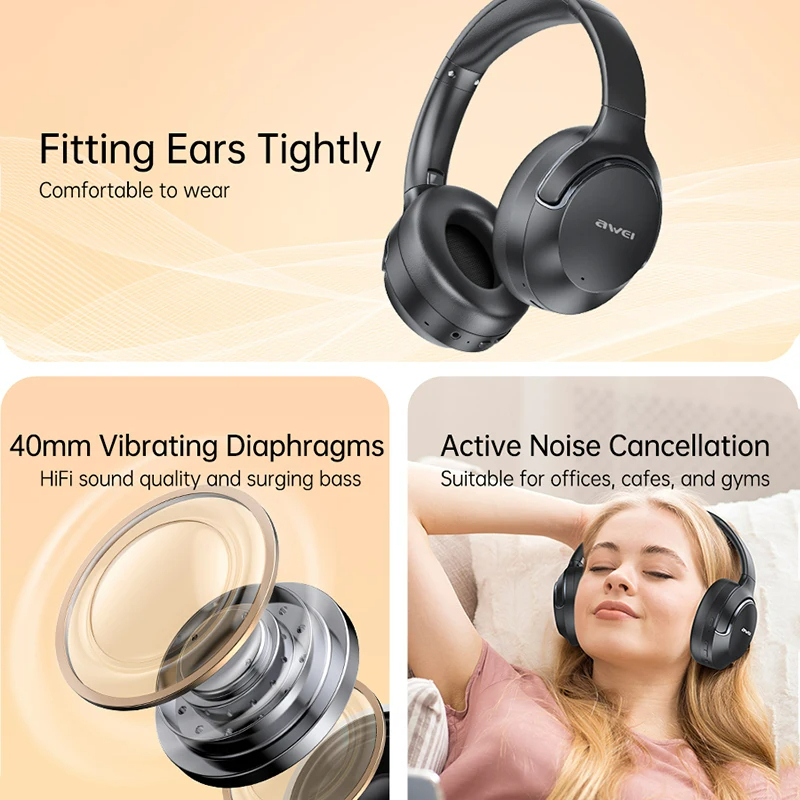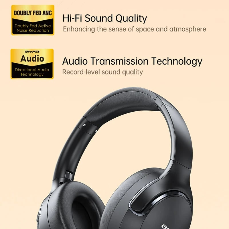 Tai Nghe Chụp Tai Không Dây AWEI AT2 (Bluetooth v5.0, 36H, ANC)