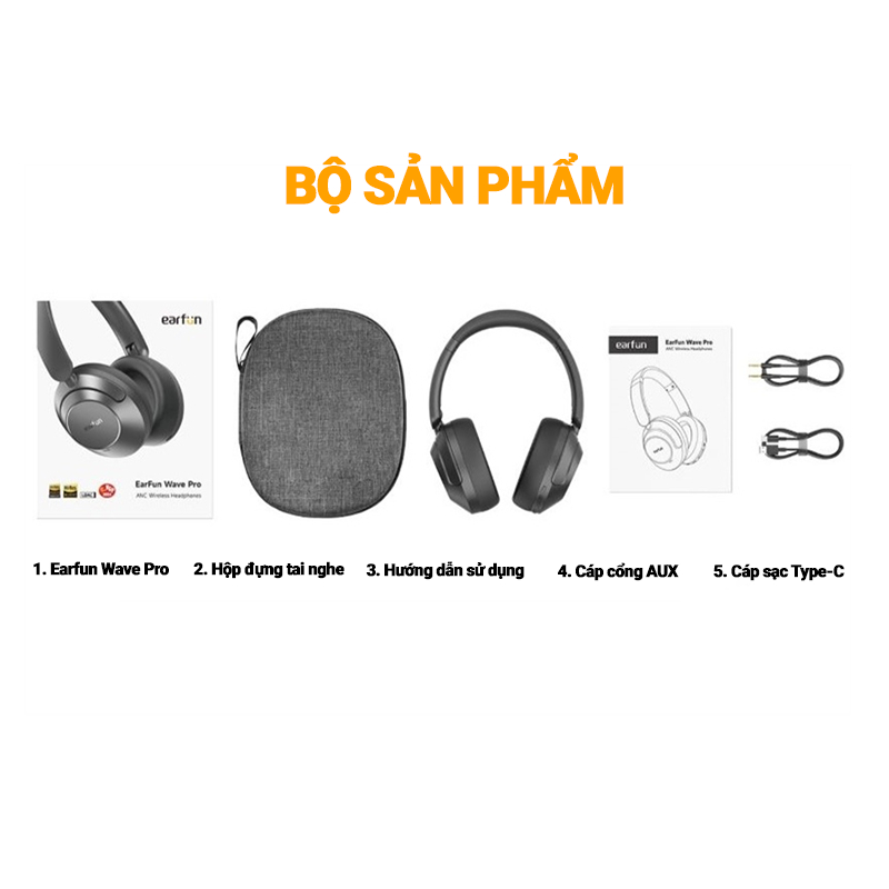 Tai Nghe Chụp Tai Không Dây Earfun Wave Pro (Bluetooth v5.3, 80H, Hi-Res Audio, LDAC, Low latency)