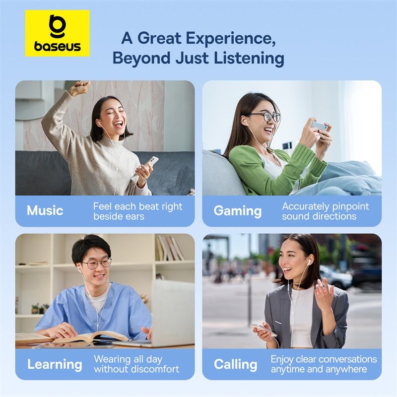 Tai Nghe Có Dây Type-C/3.5mm Baseus Encok CZ19/HZ19 (13mm Large Dynamic Drivers, 60° Semi-in-Ear, Omni-Directional Microphone)