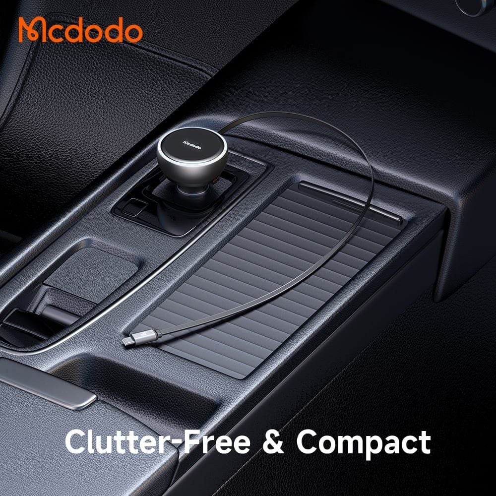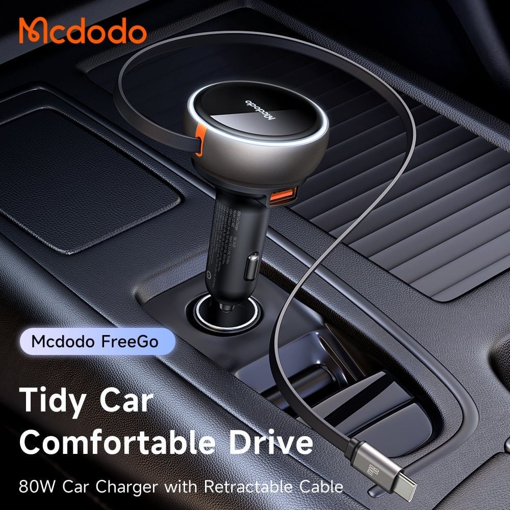 Tẩu Sạc Cho Ô Tô MCDODO CC-485 80W (With 80cm Type-C 45W built-in Retractable Cable, 1*Type-C + 1*USB-A port, Indicator Light Ring)
