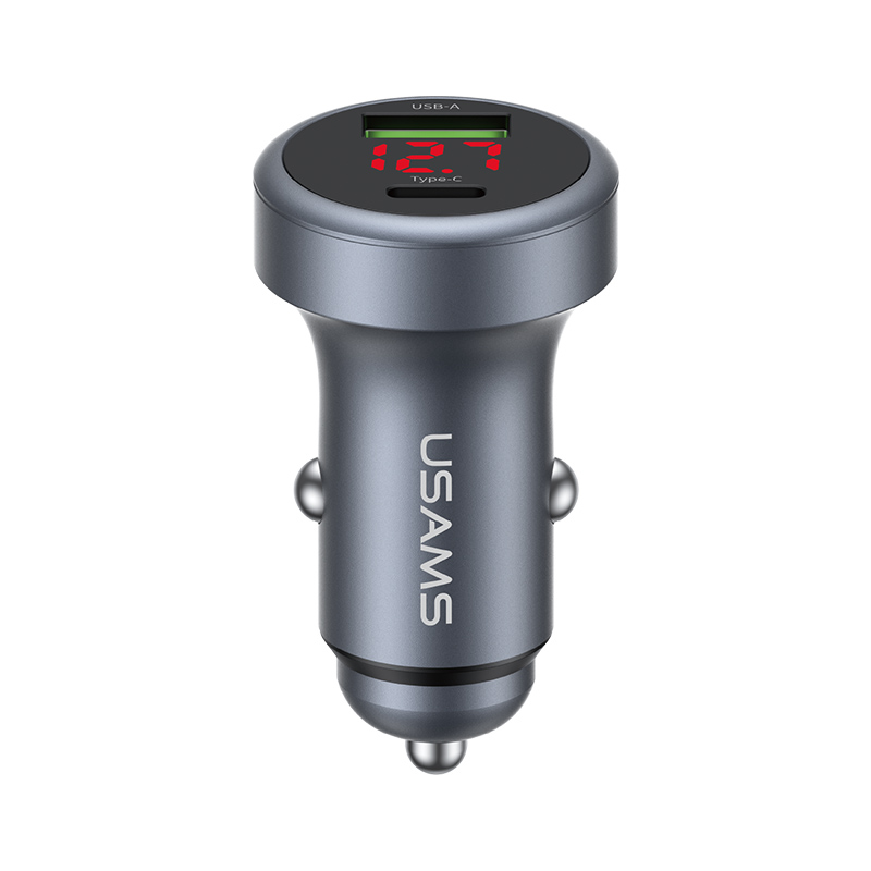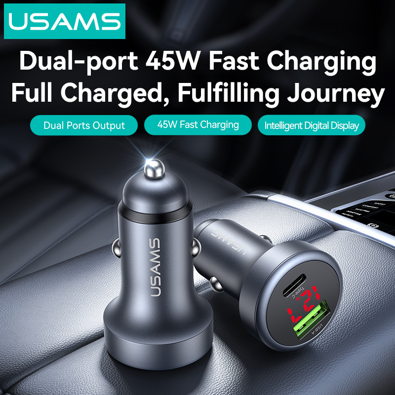Tẩu Sạc Cho Ô Tô USAMS CC327 45W (1*Type-C + 1*USB-A Ports, Digital Display)