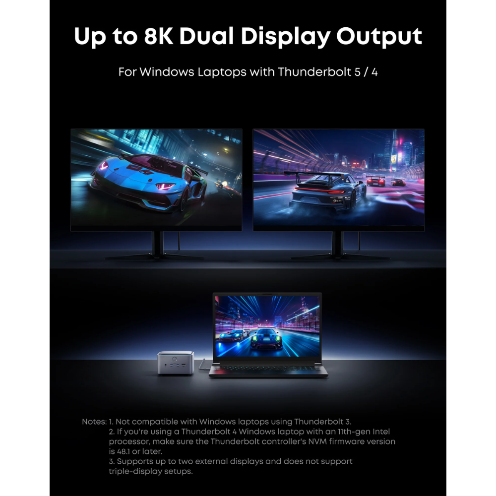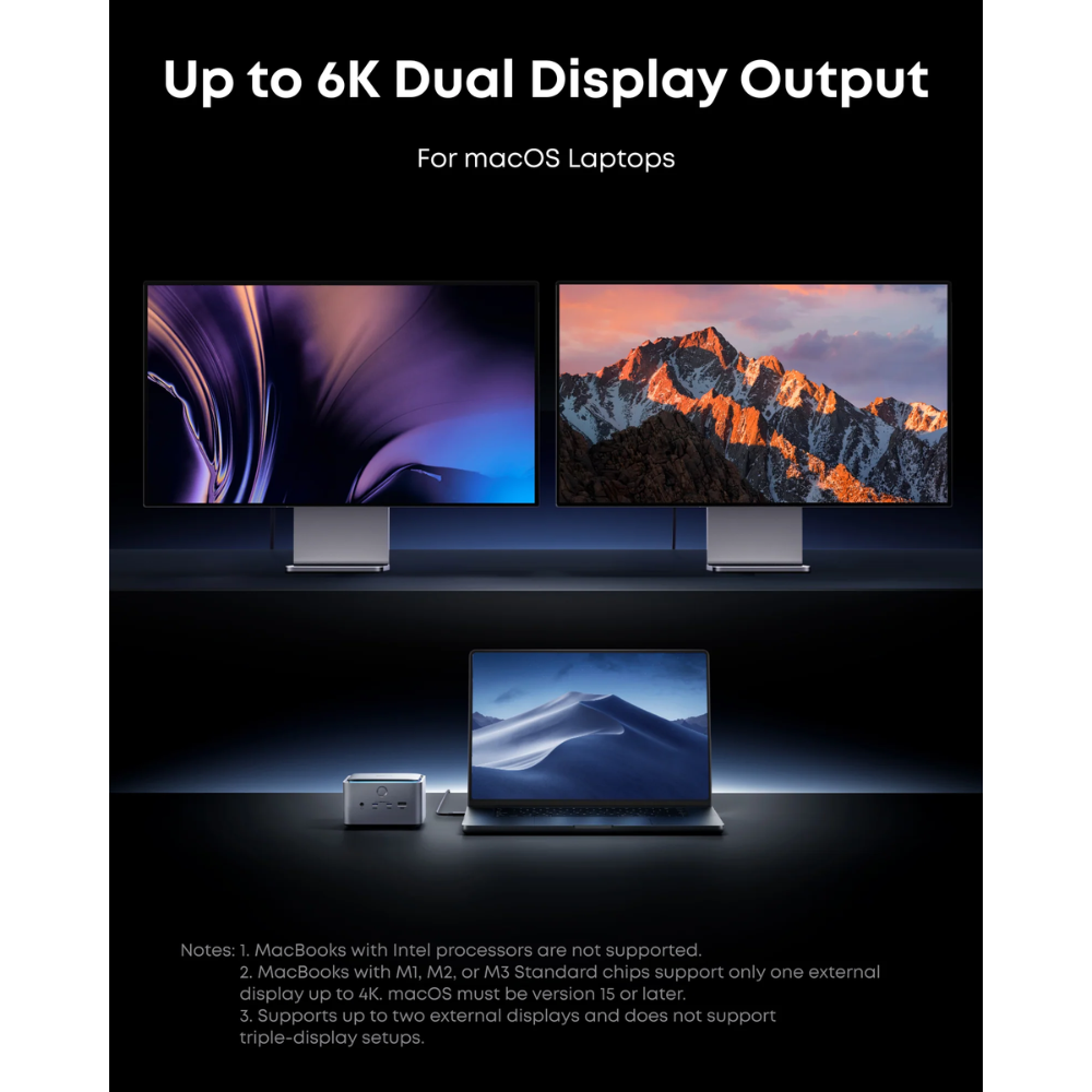 Note: This dock is not compatible with Thunderbolt 3 laptops or monitors—including those with Windows or Intel-based MacBooks—and does not support ChromeOS or Linux systems.